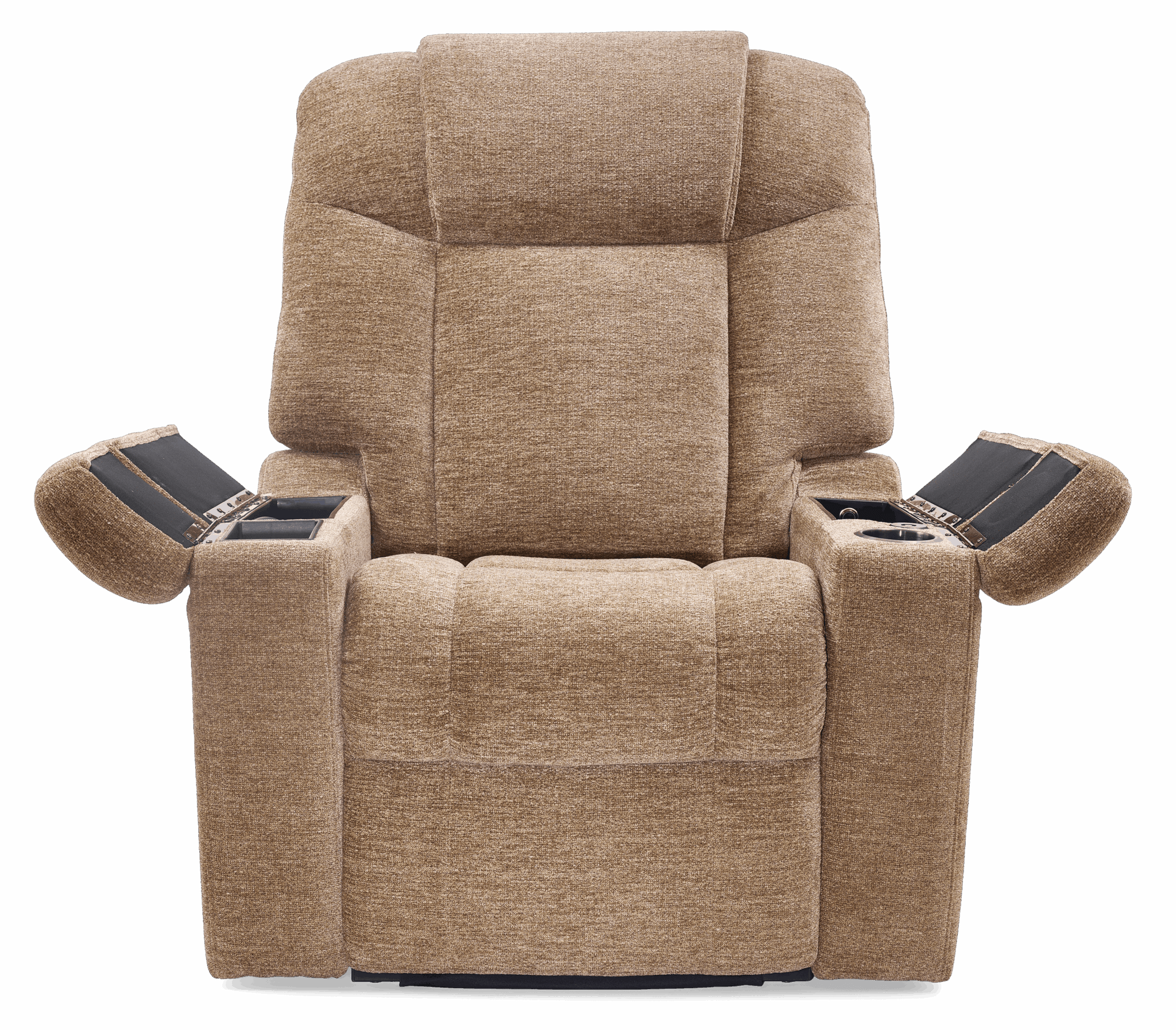 Step into everyday luxury with the Venice by Golden. Designed for total relaxation, the Venice features a generously padded seam back, plush chaise pad, and a sleek open-arm design that includes a built-in cup holder, hidden storage, a power port with a removable reading light and tray table, a wireless phone charger, and a USB port—all within arm’s reach.